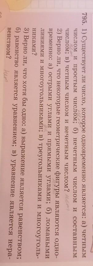 795. 1) Существует ли число, которое одновременно является: а) четным