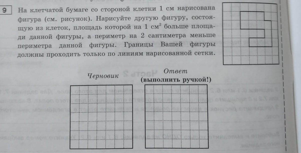 Периметр (сумма всех сторон) данной фигуры равен 20 см, чтобы периметр стал на 2 см меньше - нужно убрать две стороны клетки.