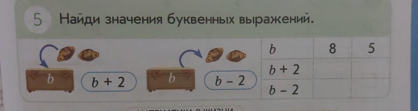 В задании нужно узнать количество предметов b+2 и b-2 в сундуке, если начальное количество b = 8 и b = 5.