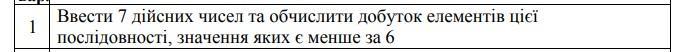 Задание Ввести 7 дійсних чисел та обчислити добуток елементів цієї