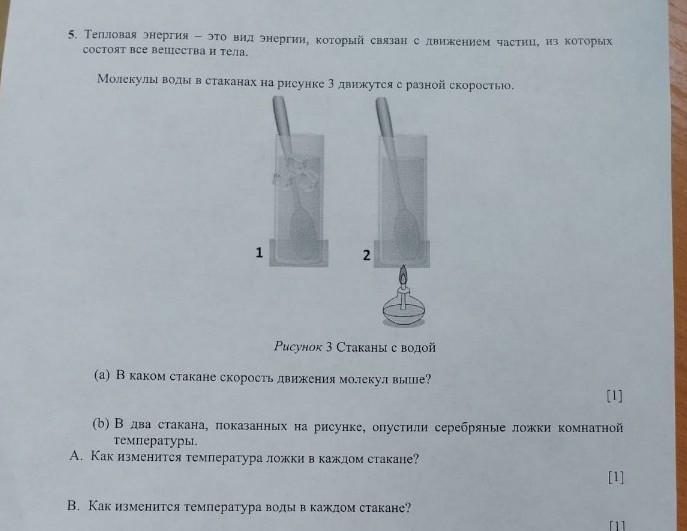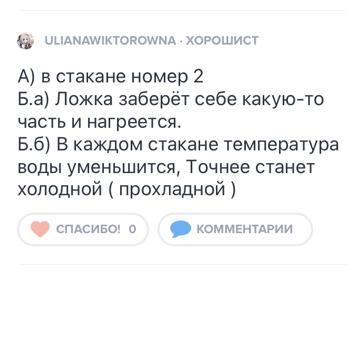 (b) А. В 1 стакане ложка замерзнет (охладиться)