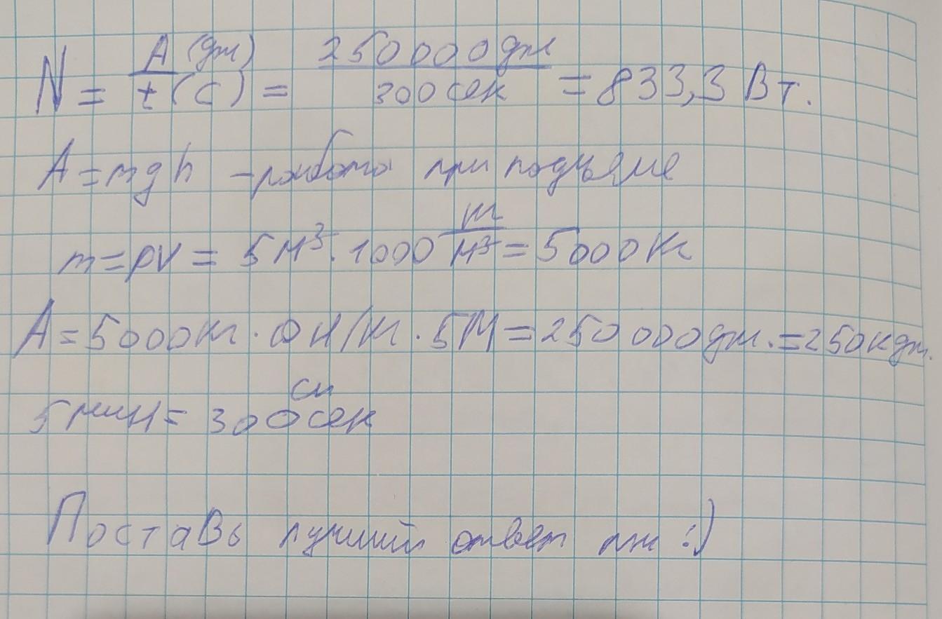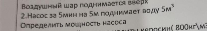 Воздушный шар поднимается вверх 2. Насос за 5 мин на 5 м поднимет воду 5м ^3. Определите мощность насоса