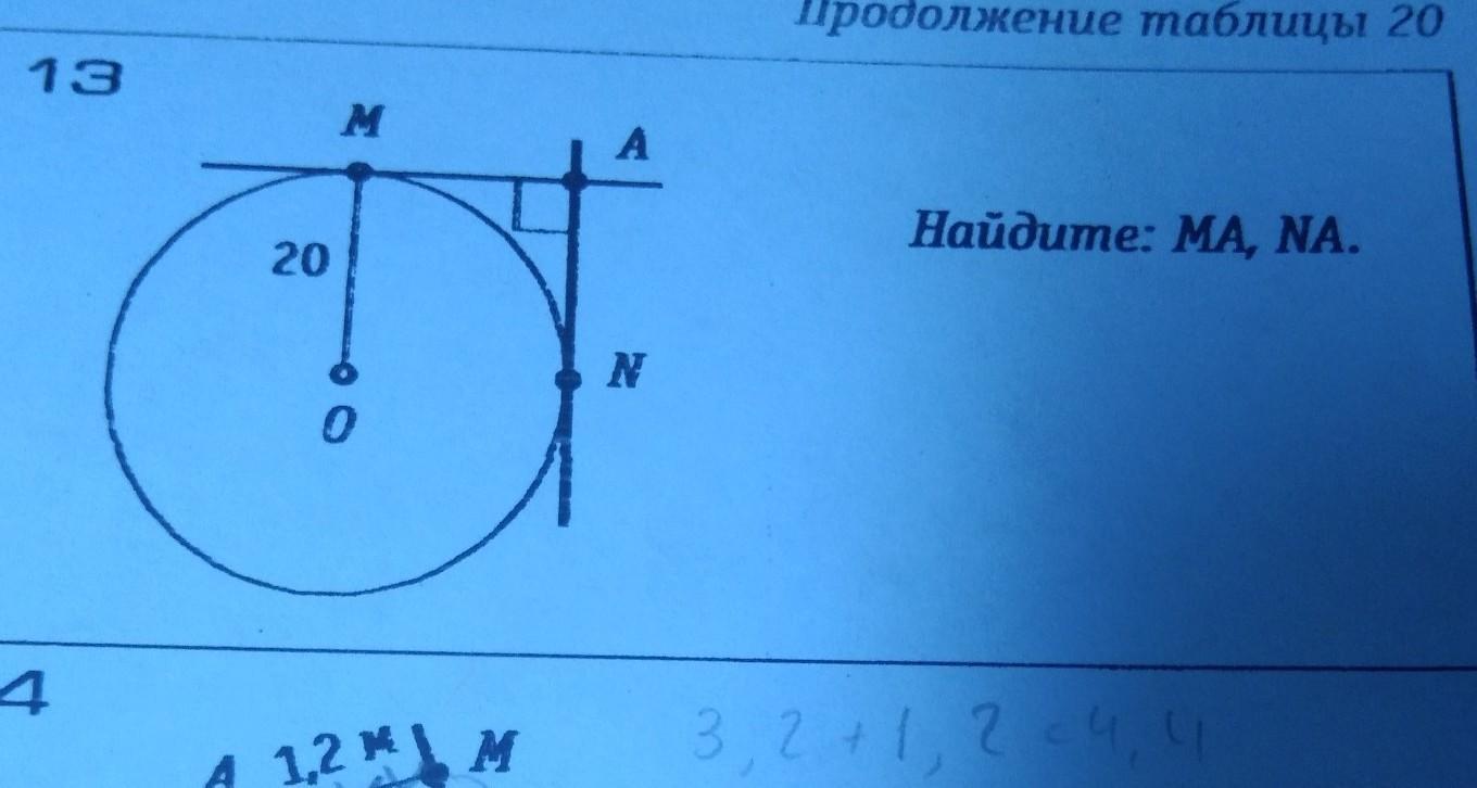 Но OM=ON - радиусы, значит прямоугольник OMAN - квадрат и MA=NA=20. (Если две смежные стороны прямоугольника равны, то этот прямоугольник является квадратом)
