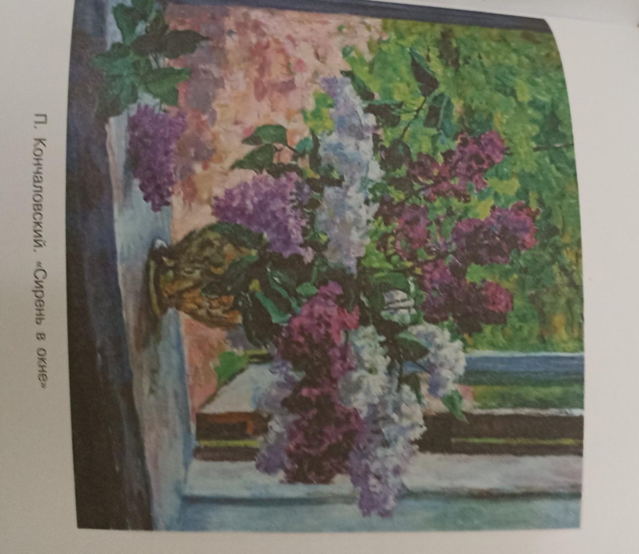 Я увидел(а) картину П. Кончаловского «Сирень в окне». На картине изображено окно, на подоконнике которого стоит букет сирени.