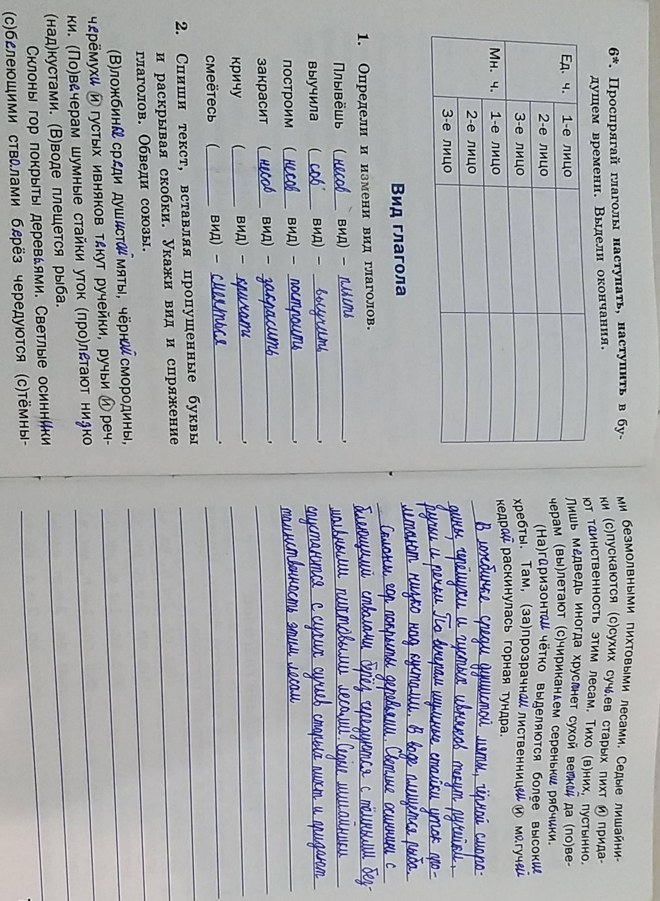Склоны гор покрыты деревьями. Светлые осинники с белеющими стволами берез чередуются ( несов, 1 спр) с темными безмолвными пихтовыми деревьями. Седые лишайники спускаются ( несов, 1 спр) с сухих сучьев старых пихт и придают(несов, 1 спр) таинственность этим лесам. Тихо в них, пустынно. Лишь медведь иногда хрустнет ( сов, 1 спо) сухой веткой да по вечерам вылетают ( несов, 1 спр) с чириканьем серенькие рябчики.