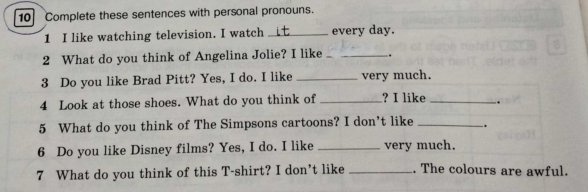 7. Что вы думаете об этой футболке? Она мне не нравится. Цвета ужасные.