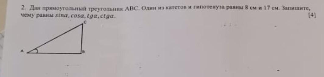 2) если же АВ=8, тогда cos∝=8/17; sin∝=15/17; g∝=1.875;ctg∝=8/15.