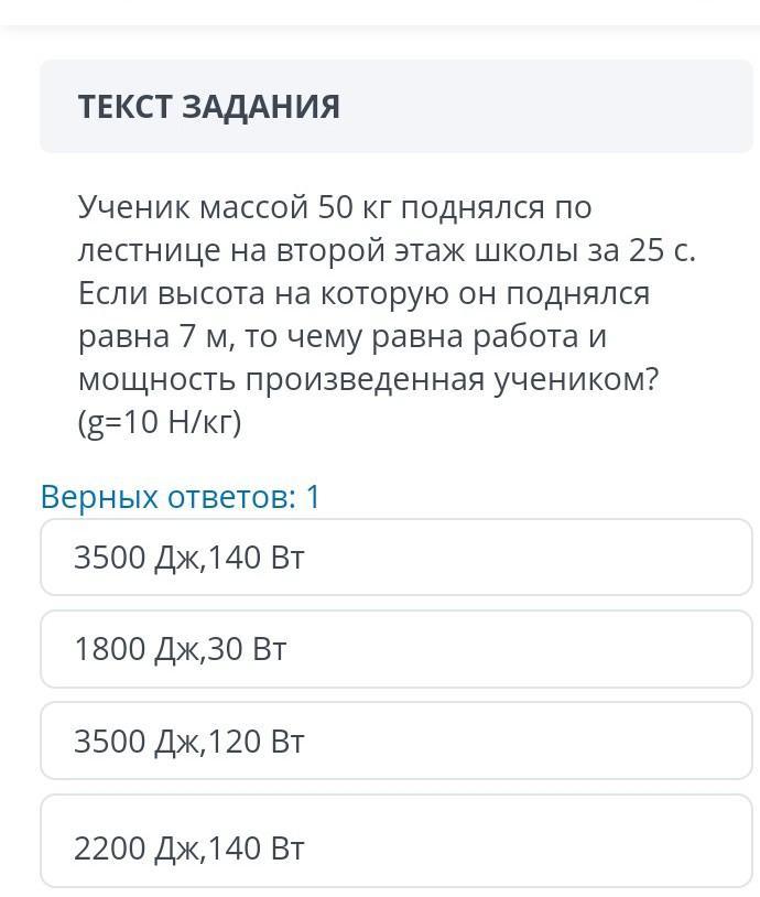 A = m·g·h = 50·10·7 = 3 500 Дж