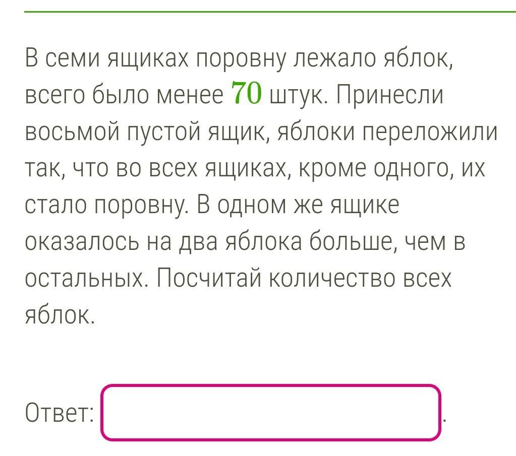 если в каждом ящике было по 6 яблок, по одному забрали осталось 5 яблок. Но по одному забрали из 7