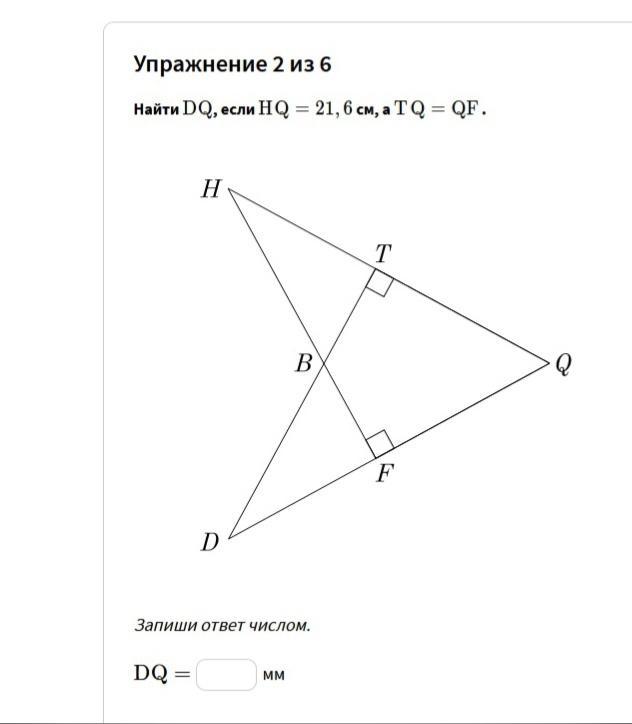 Т.к. угол q общий, tq и fq равны, значит треугольники HFQ и TQD равны по катету и прилежащему к нему острому углу