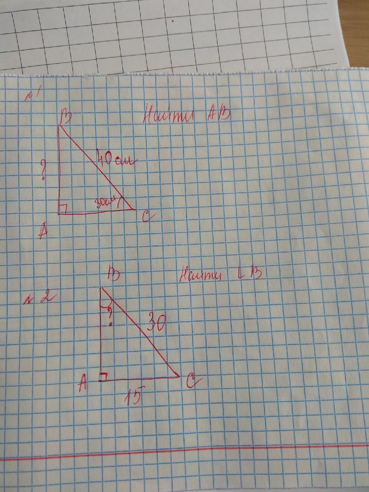 2) отношение катета АС, к гипотенузе, равно 15/30=1/2⇒∠В=30°