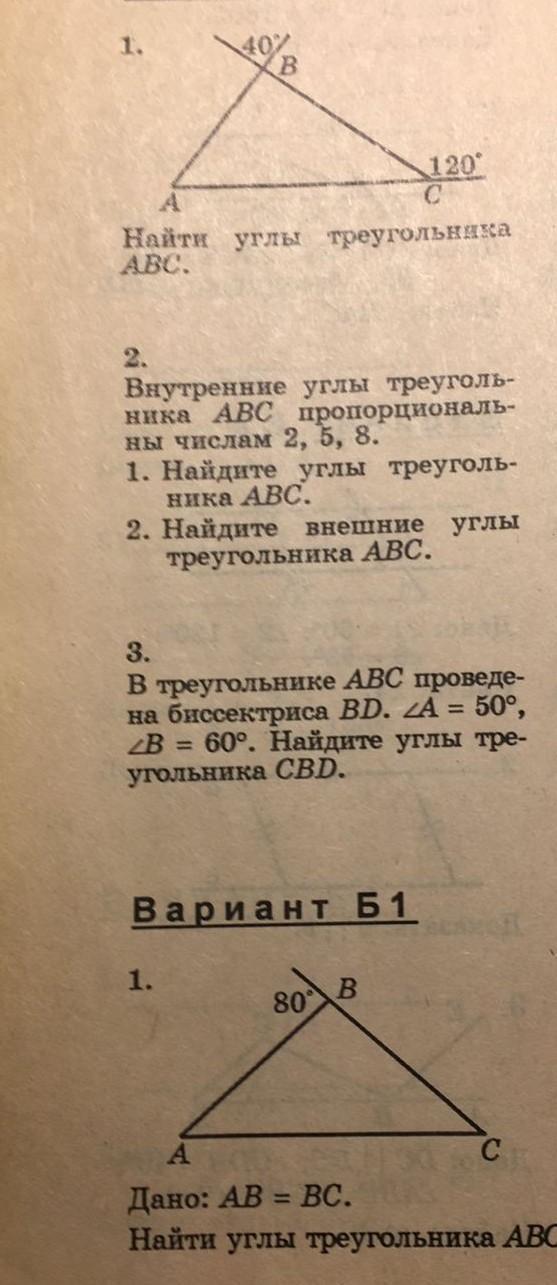 1.угол В=40° градусам(потому что он вертикальный для внешнего угла), угол с=60(потому что он смежный для внешнего угла, находится так: 180-120=60)