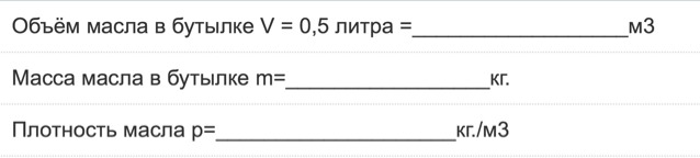 Бутылка без масла имеет массу 50 гр, а с маслом-450 гр. Какова по этим данным плотность масла, если объём бутылки 0,5 литр?