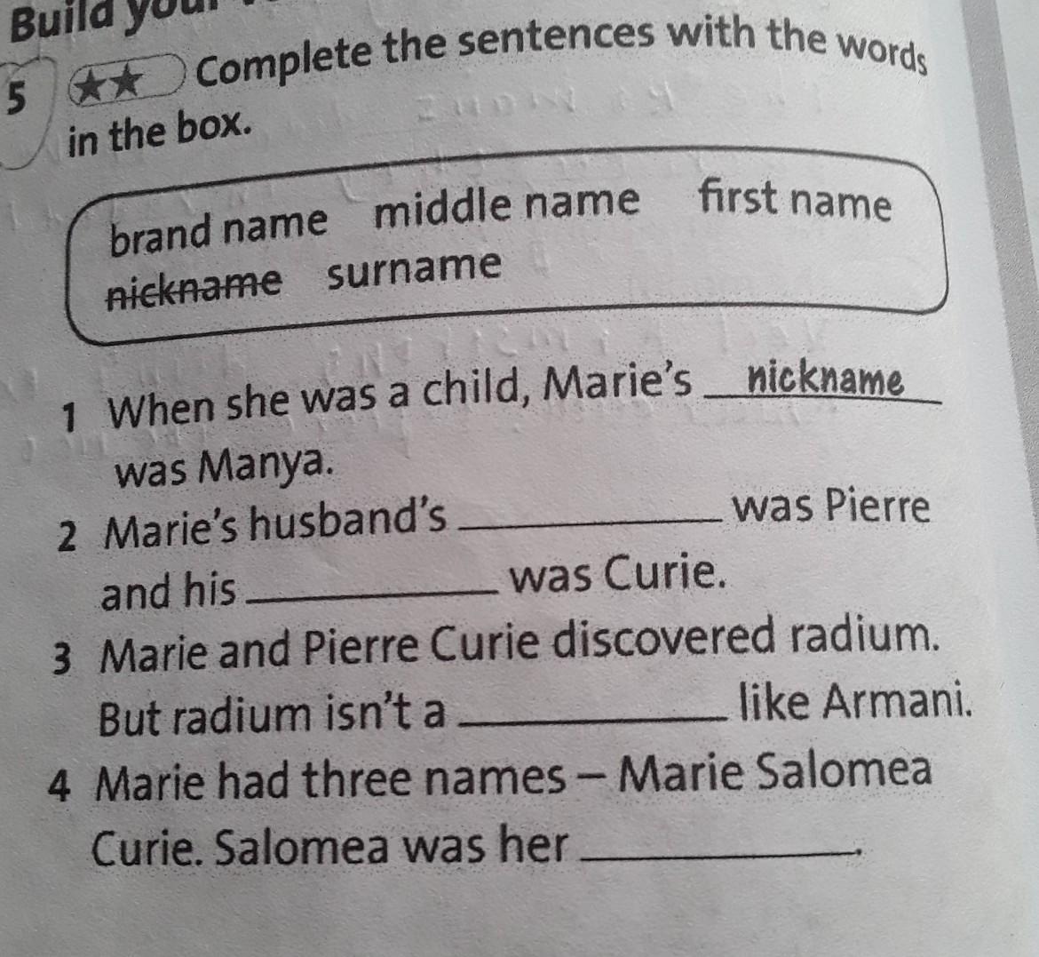 2. first name; middle name
