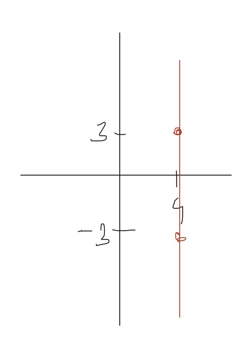 В 5. По отношению к оси игрек прямая идёт параллельно. По отношению к икс - она ее пересекает в точке 4.