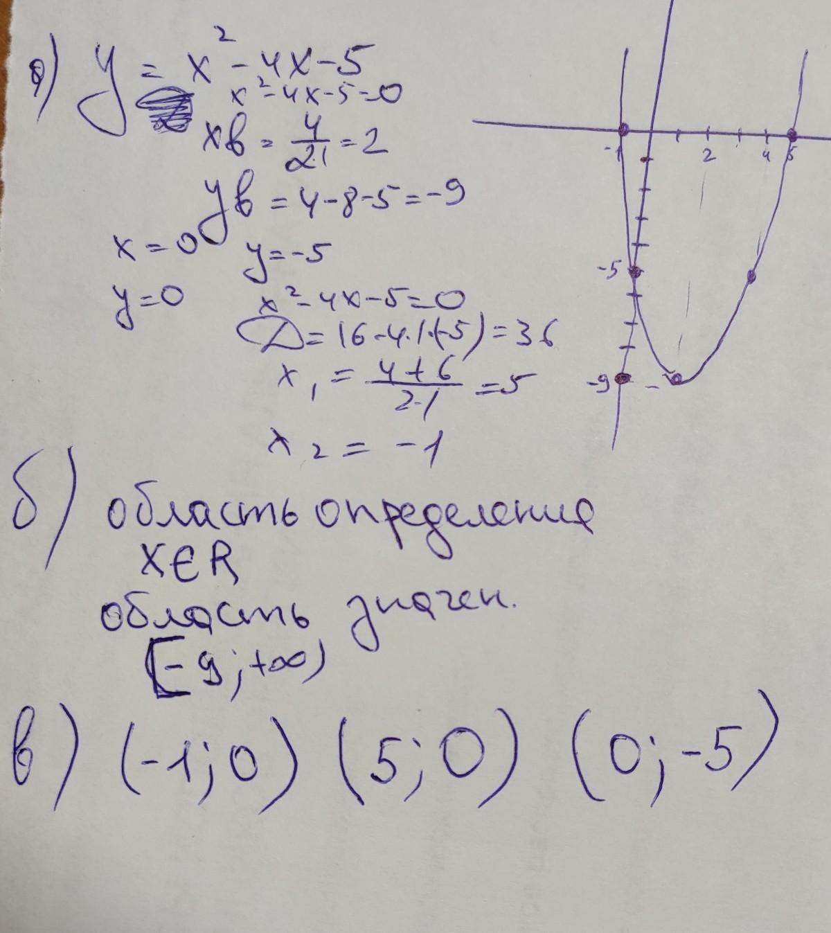 Задана функция y = x^2 – 4x – 5.