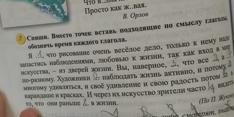 3) Художники умеют (3 лицо, мн. число, настоящее время) наблюдать жизнь активно, и потому учатся (3 лицо, мн. число, настоящее время) многому удивляться, и свое удивление и свою радость потом выражают (3 лицо, мн. число, настоящее время) в карандаше и красках.