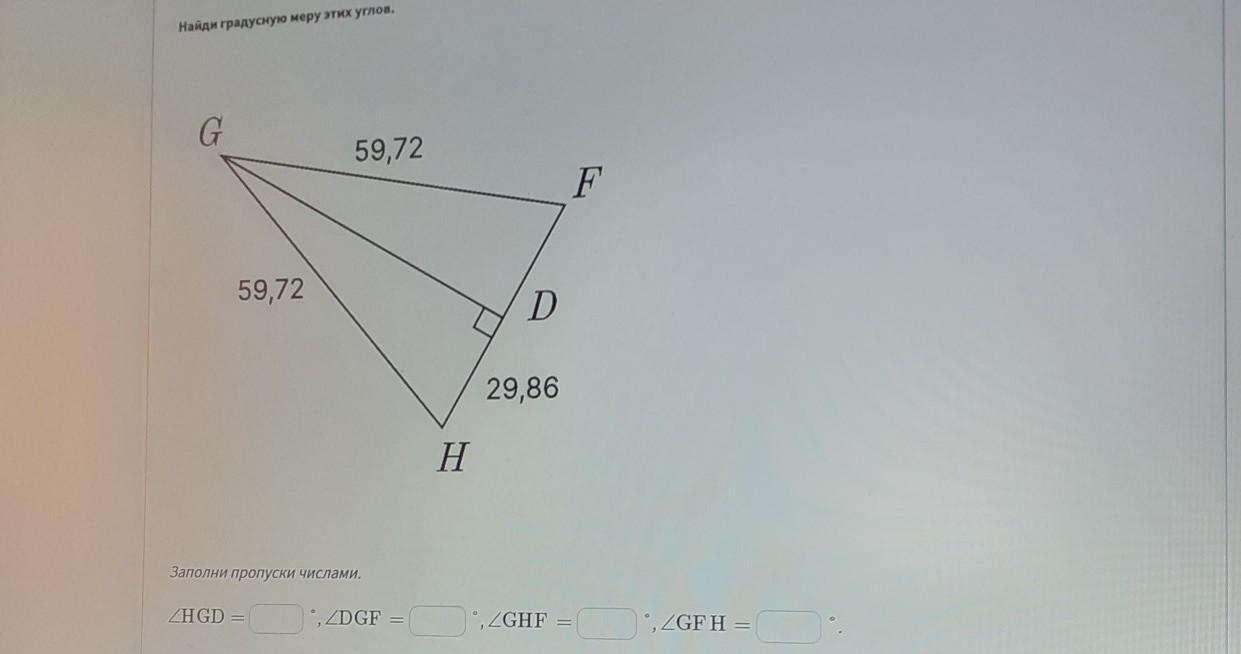 Найди градусную меру этих углов. HGD; DGF; GHF; GFH