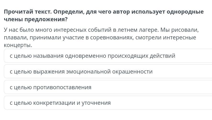 автор перечисляет занятия разного рода, чтобы дать представление о своих занятиях в лагере, тем самым конкретизирует и уточняет