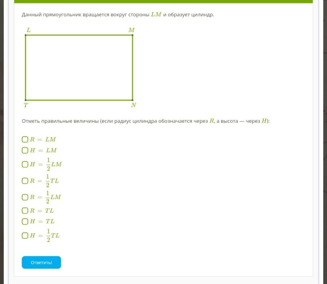 H=LM - то, около чего вы вращаете прямоугольник, получая цилиндр.