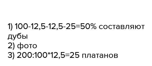 Ответ:50%состовляет дуб,25платанов расьётрасьёт в парке