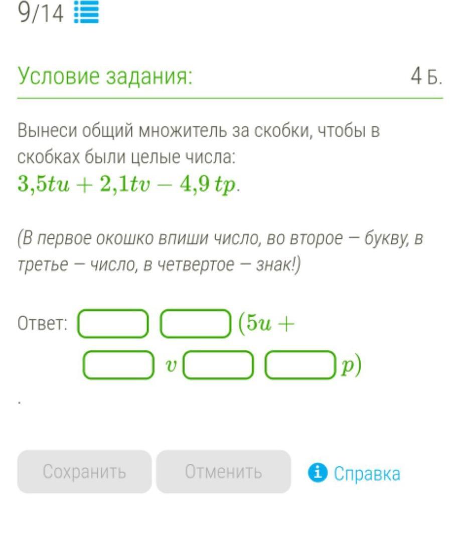 3,5:5= 0,7, значит 0,7 и t общее во всех трёх выражениях, его мы и выносим за скобку. Теперь смотрим что осталось