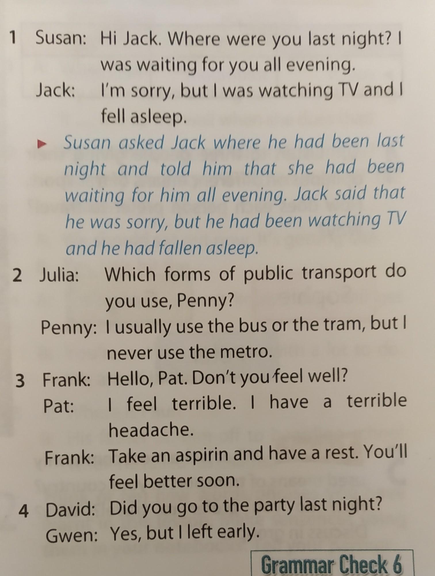 2) Julia asked Penny which forms of public transport he used and he told her that he usually used the bus or the tram and that he never used a metro