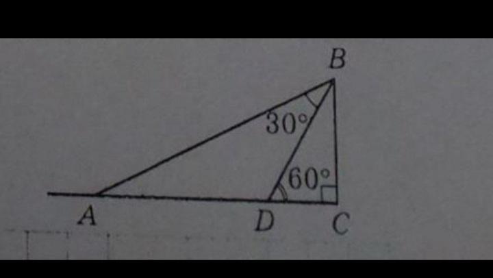 В треугольнике BAD, <АDB=180°-ВDC=180°-60°= 120°(смеж.), <A=180°-120°-30°=30°