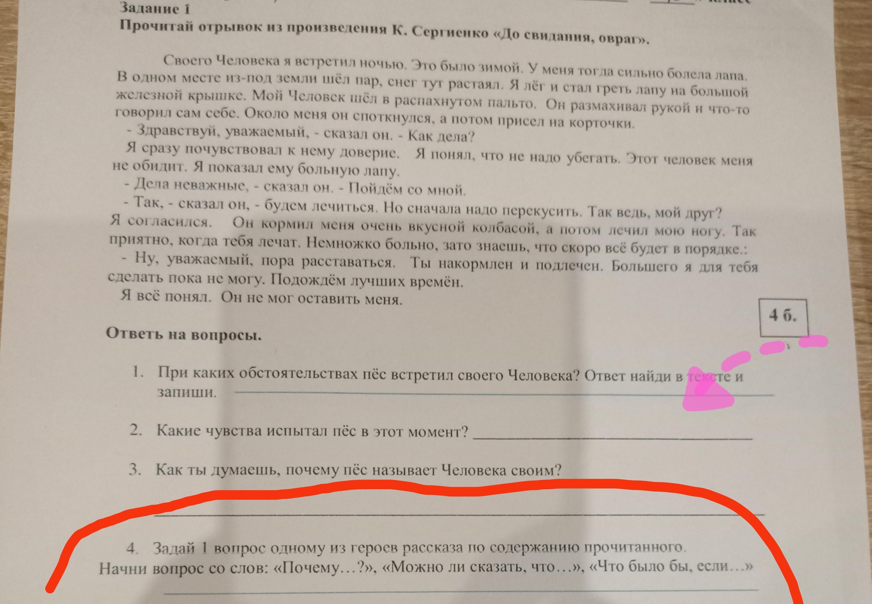 Задай 1 вопросы одному из героев рассказа по содержанию прочитанного Начни со слов:"Что было бы если....." "почему...""можно ли сказать что....."Помогите пжжжжжж.