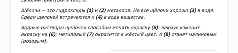 1) щелочных