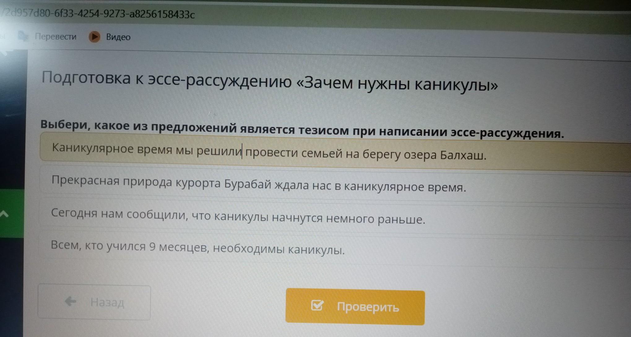 Выбери, какое из предложений является тезисом при написании эссе-рассуждение