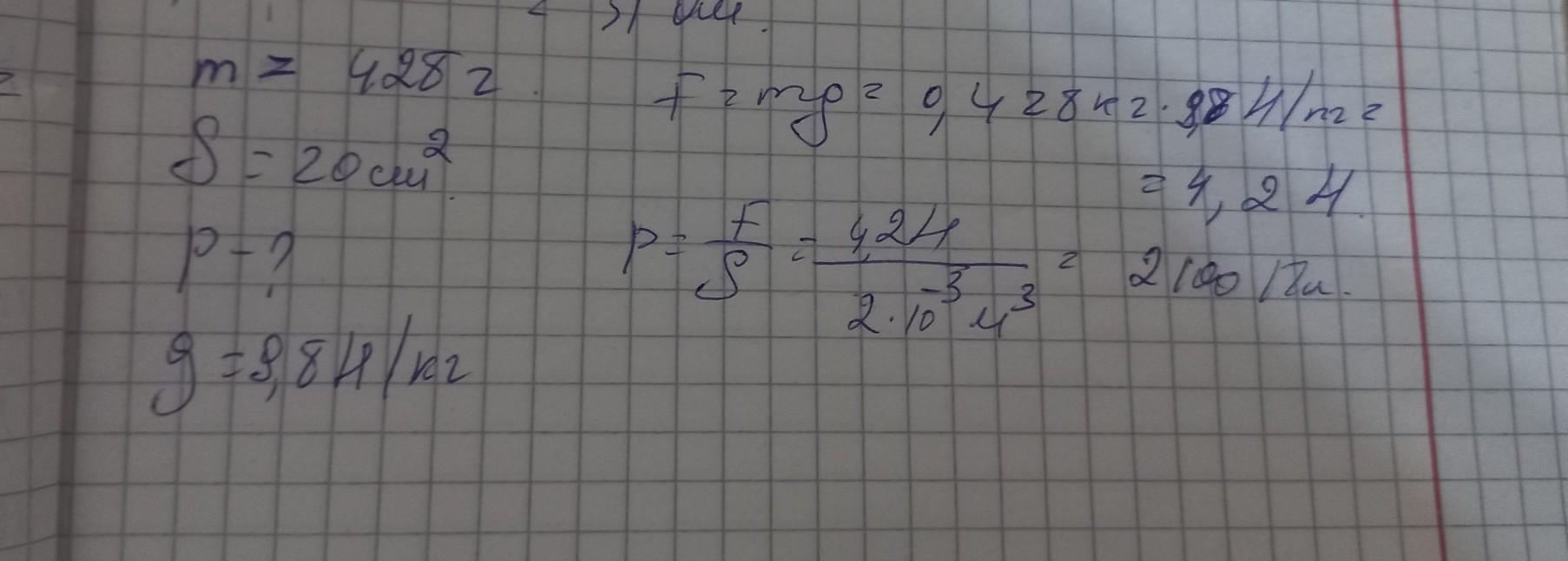 428 г жидкости налили в сосуд, площадь дна которого равна 20 см².