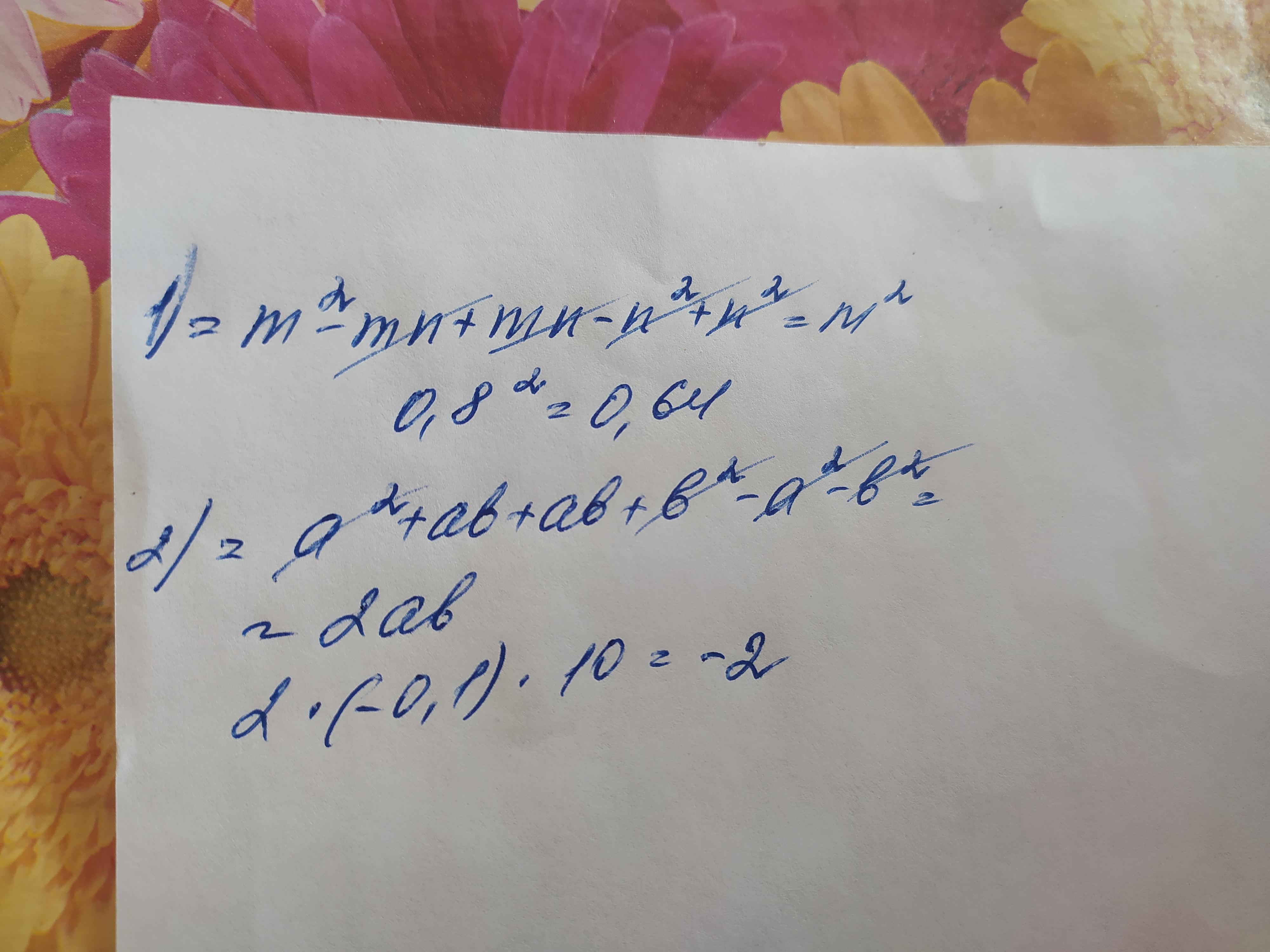 Упрости выражения и найди их значения: 1) (m+n)(m – n) +n², если m= 0,8, n= 0, 137.