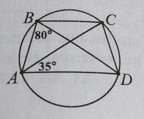 ПОЖАЛУЙСТА, СРОЧНО. Трапеция ABCD вписана в окружность. Най- дите угол при вершине А этой трапеции, если угол ABD = 80°, угол CAD = 35°.
