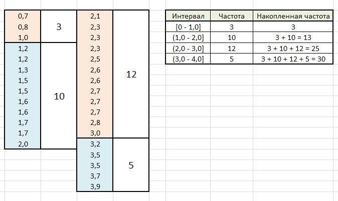 1. Продолжительность выполнения домашнего задания (в часах) по результатам опроса 30 учащихся приведена в таблице: 3,5 1,5 2,7 1,6 3,5 0,8 2,6 1,23,2 2,5 2,3 1,72,13,9 2,7 1,2 2,3 1,0 2,6 2,7 1,7 1,6 0,7 2,3 2,0 1,5 1,3 3,72.83.0 представьте данные в виде интервальной таблицы частот с интервалом в 1 час; b) определить накопленную частоту.