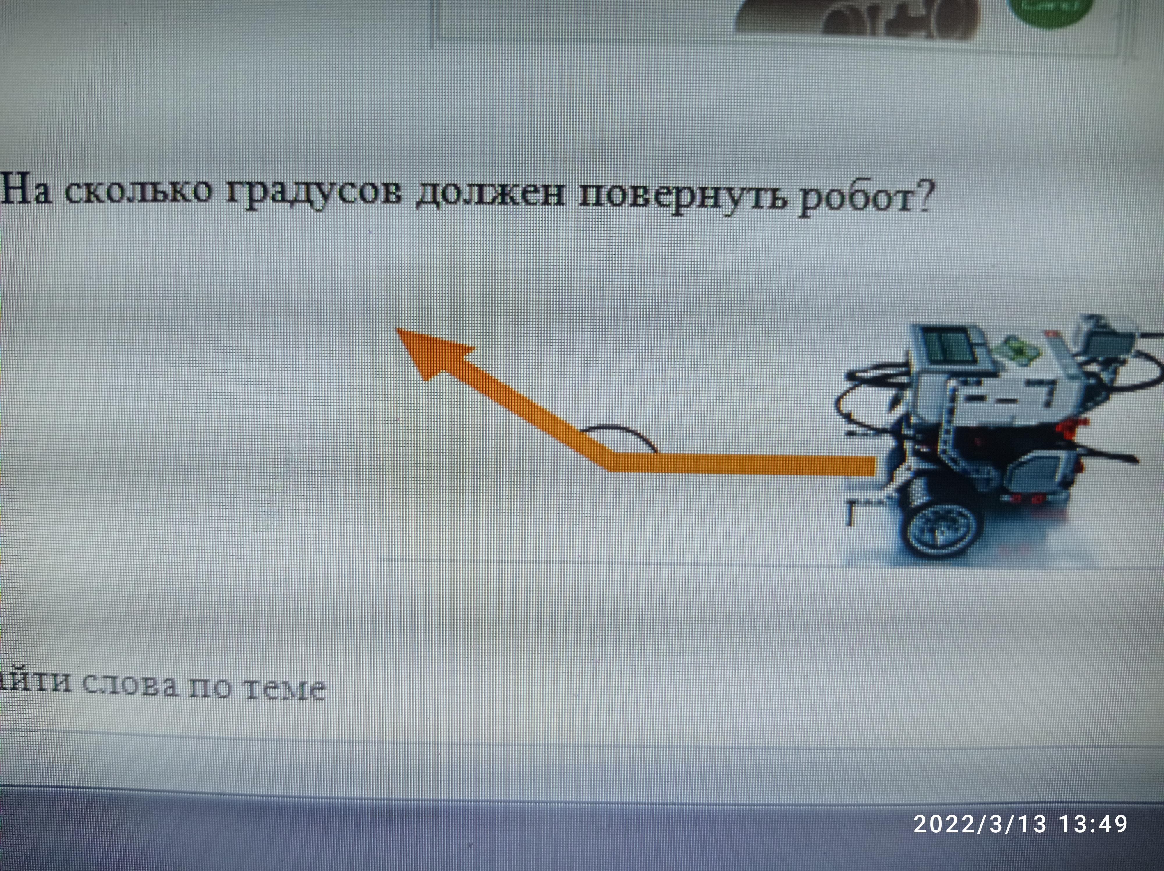 он должен повернуть на 45 градусов