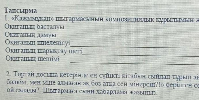 2 тапсырманы білмеймін. Бірақ менің ойымша "Өйткені оған бұйырмаған ақ боз атты Орашқа берілуі. және де өзі оқыған қызықты кітабын Орашта оқысын, бәлкім Ораш Тортайдың атынан біреуге беретін шығар"