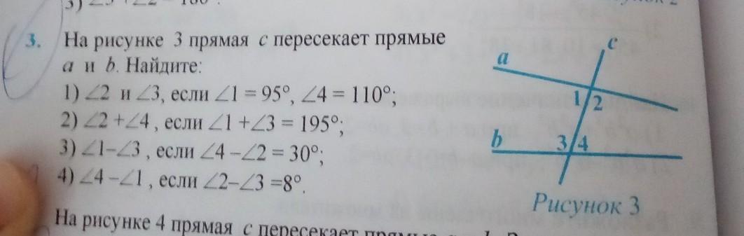 - угол 1 и 2 смежные, а сумма смежных углов равна 180°, значит чтобы найти угол 2 нужно 180 - 95 = 85°. углол 3 и 4 тоже смежные, значит 180-110= 70 °