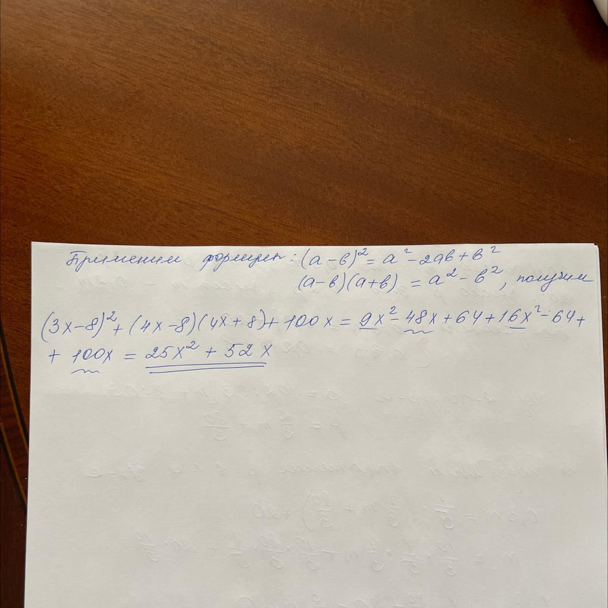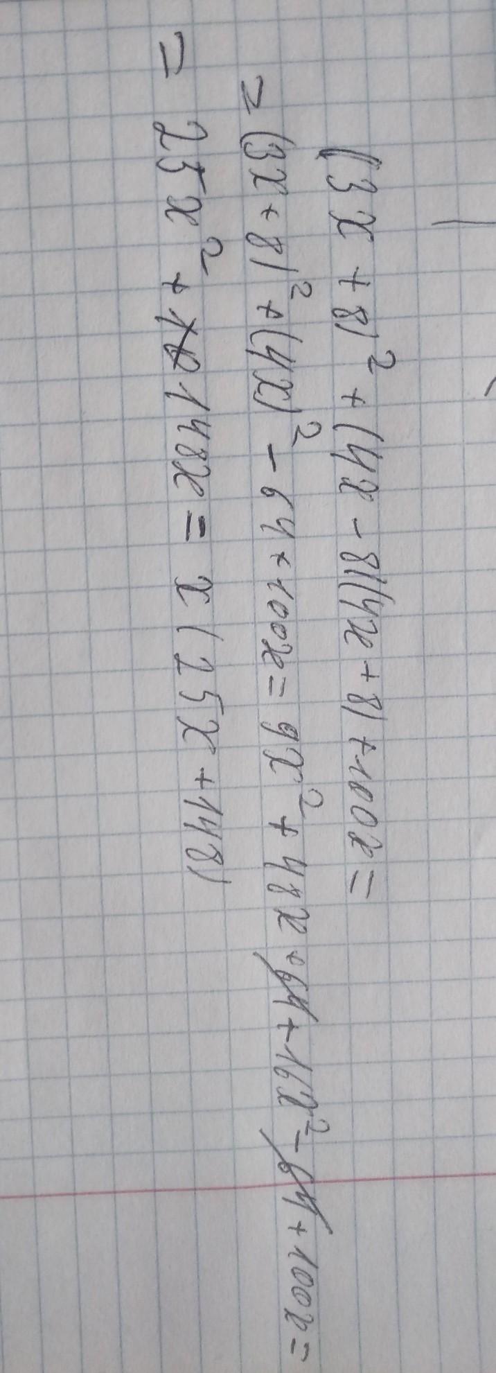 сначала разложил по формуле разности квадратов ,потом раскрыл скобки ,привел подобные ,вынес за скобки x