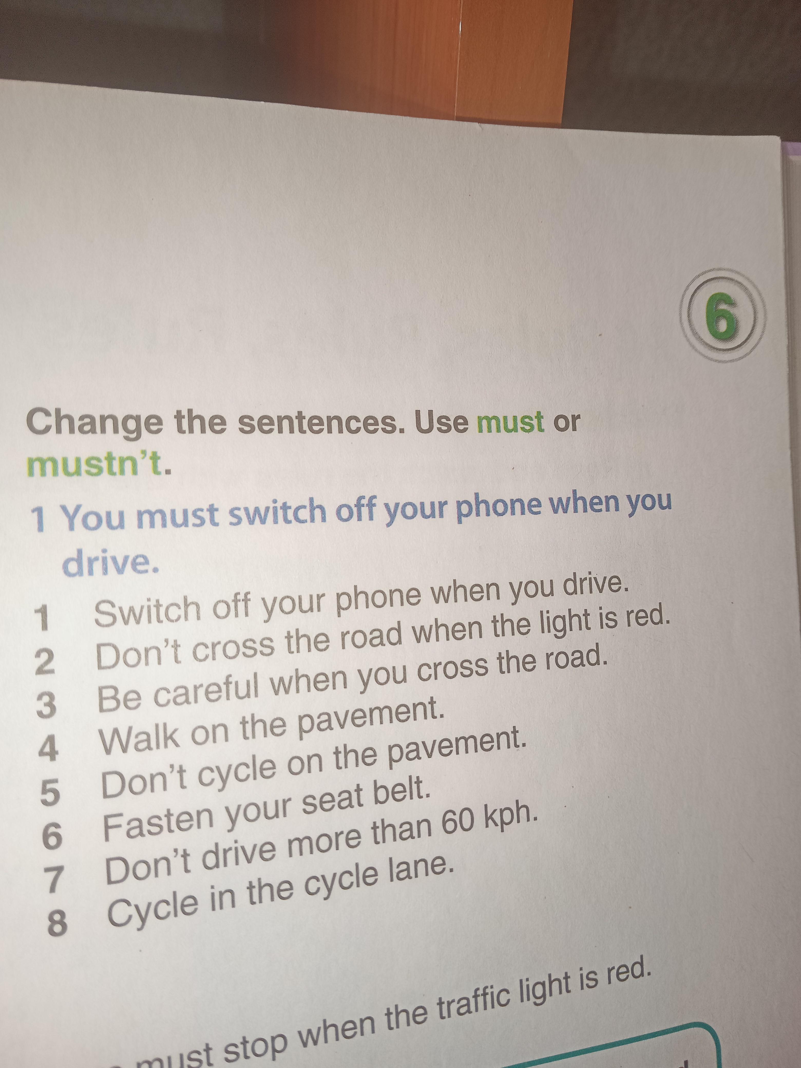 2. you mustn’t cross the road when the light is red. - ты не должен переходить дорогу, когда горит красный свет.