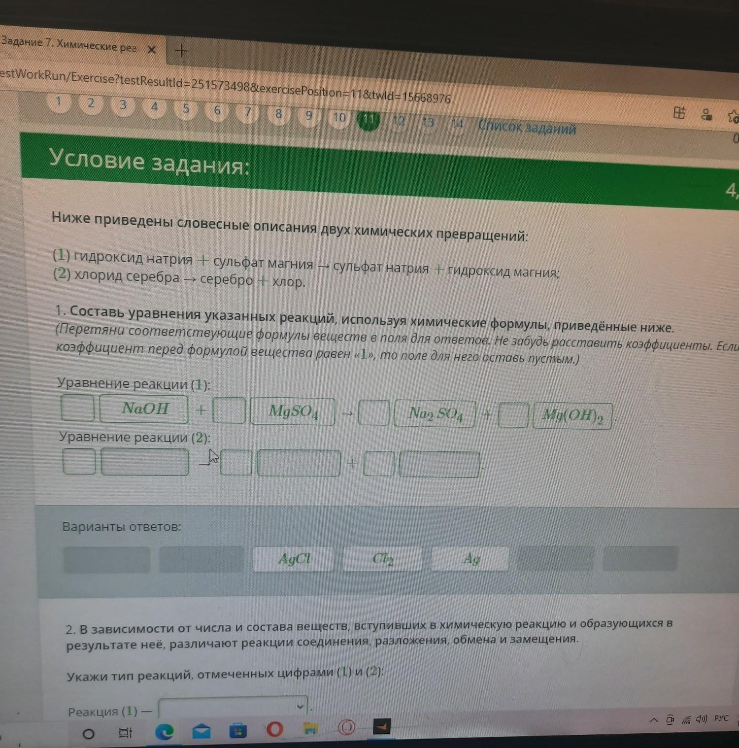 1) MgSO4 + 2 NaOH → Na2SO4 + Mg(OH)2.