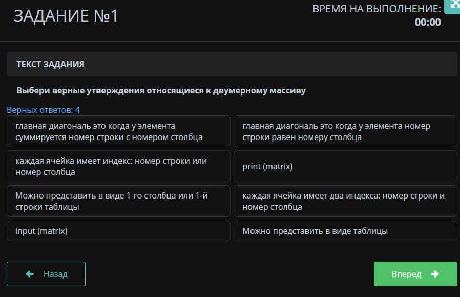 главная диагональ это когда элемента суммируется номер строки с номером столбца