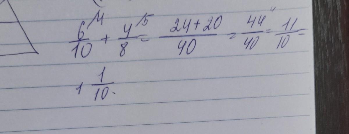 потому что 6/10 прибавить 4/8 и получается ответ 10/18 смотри рисунок можно вот так сделать 6/10+4/8=10/18(пример)