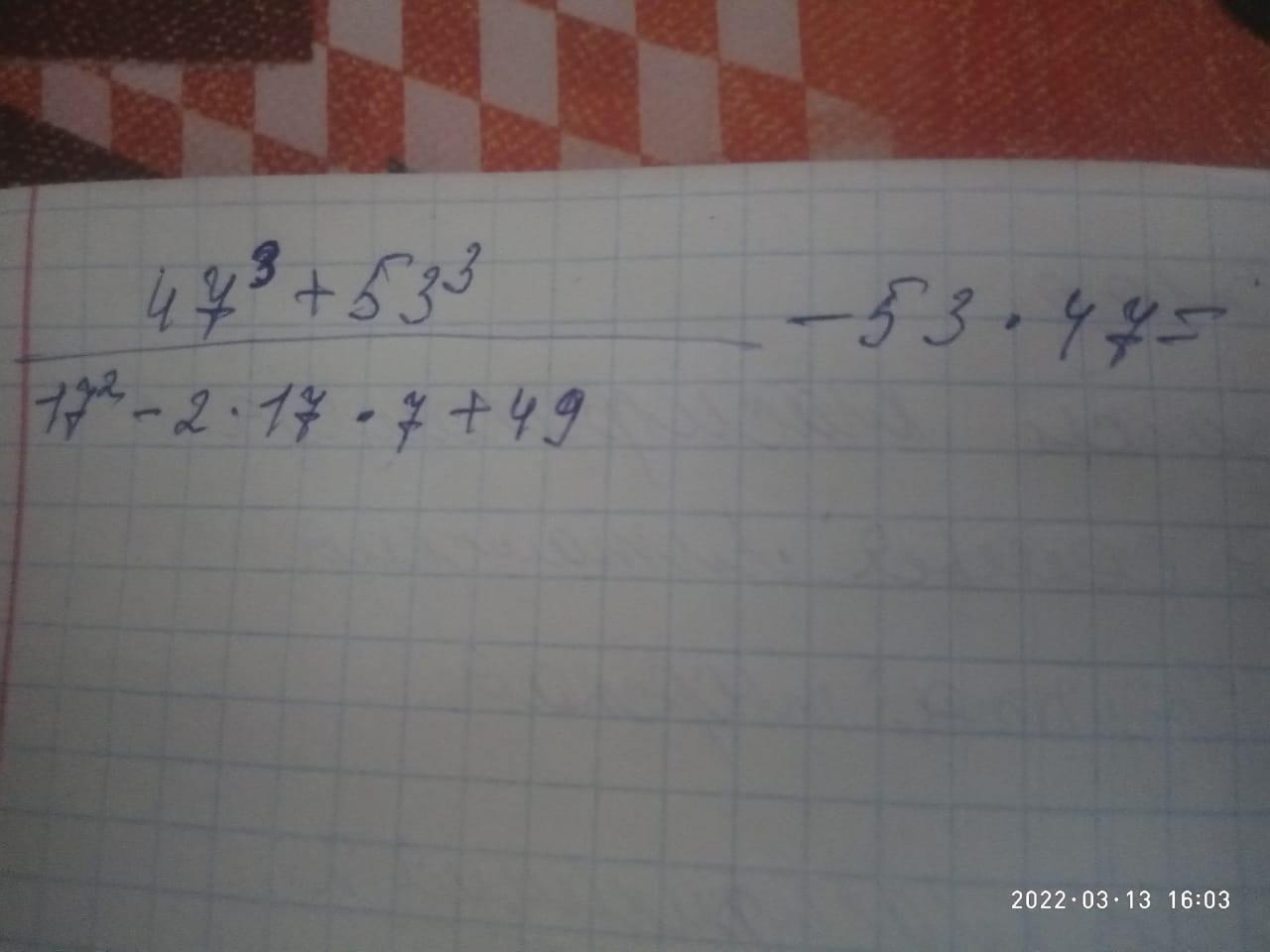 в числителе сумма кубов, развернуть по формуле, в знаменателе квадрат разности, свернуть по формуле: