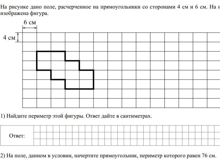 На рисунке дано поле, расчерченное на прямоугольники со сторонами 4 см и 6 см. На нём