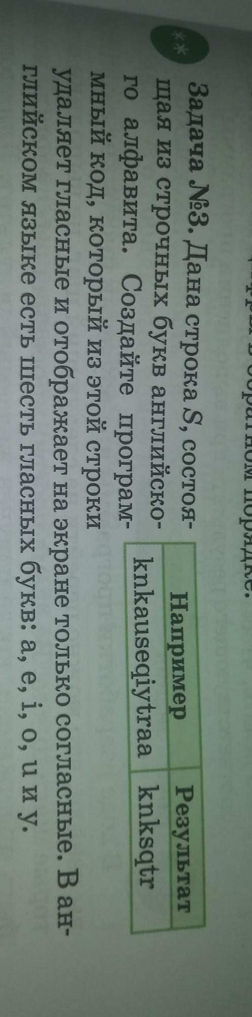 Дана строка S,состоящая из строчных букв английского алфавита..Создайте программный код,который из этой строки удаляет гласные и отображает на экране только согласные.В английским языке есть шесть гласных букв: a,e,i,o,u и y