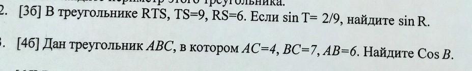 sin∠R=TS×sin∠T÷RS=9×2/9÷6=2/6=1/3