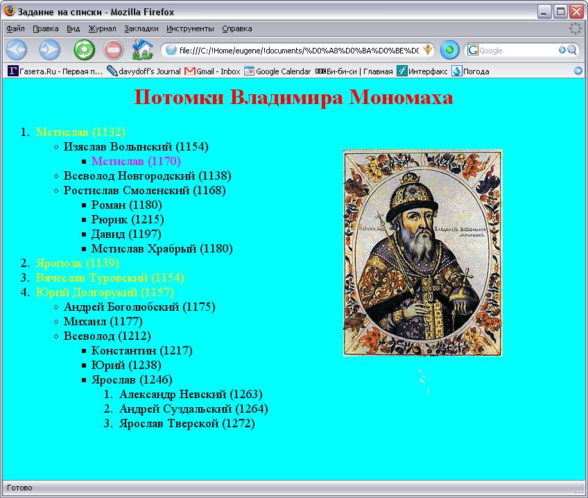<center> <b>Потомки Владимира Мономаха </b></font>