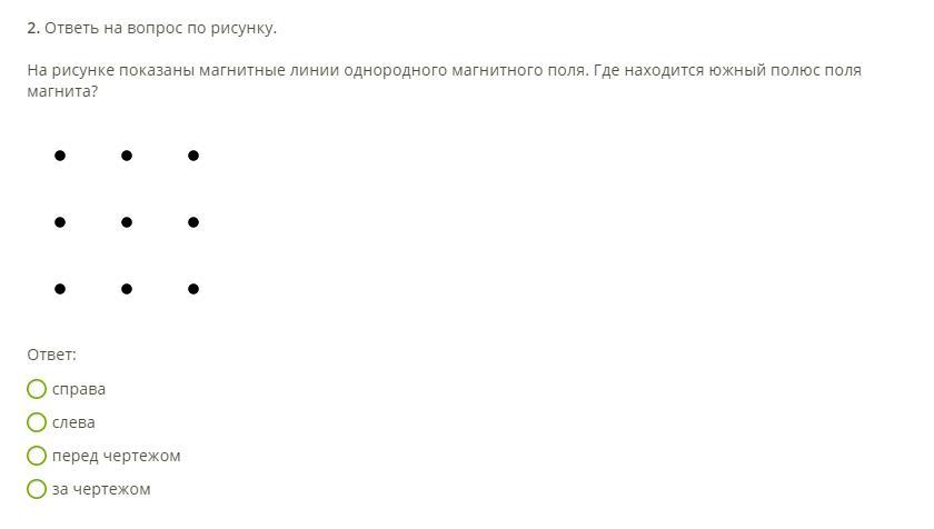 На рисунке показаны магнитные линии однородного магнитного поля. Где находится южный полюс магнита?