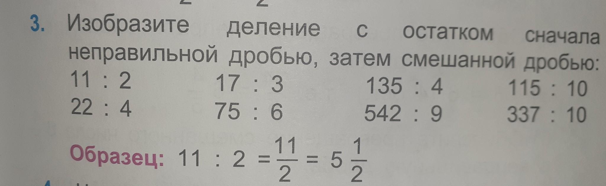 22: 4= 22/4= 5 5/4; 17:3= 17/3= 2 47/3; 75:6= 75/6= 12 5/6; 135:4=135/4= 33 75/4; 542: 9= 542/9= 2 6/9; 115:10=115/10= 11 5/10; 337:10= 337/10= 33 7/10.